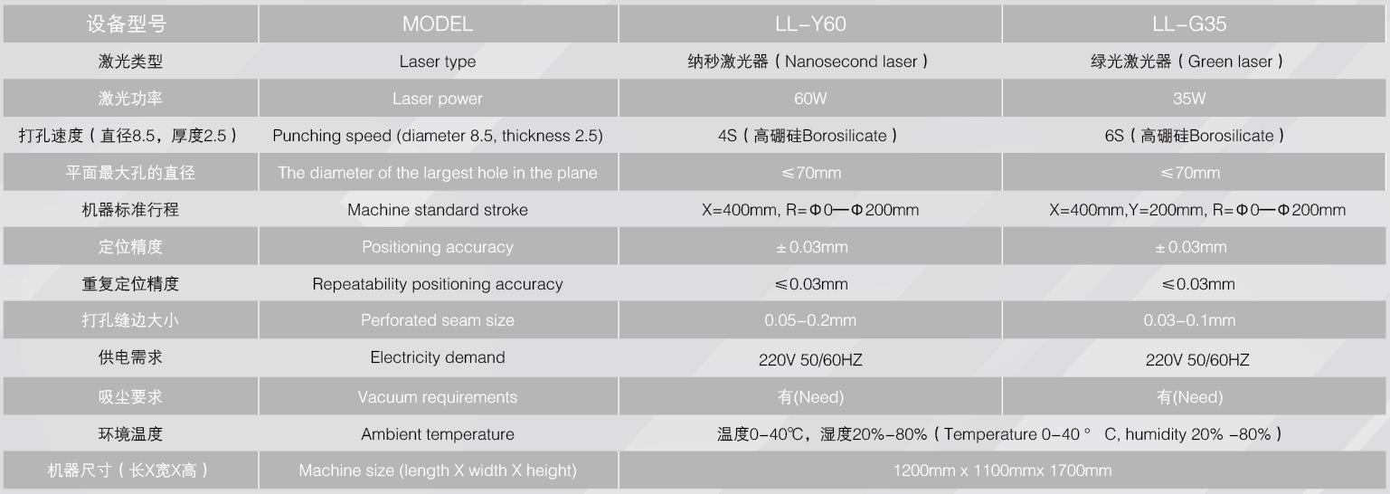 玻璃打孔機是集打孔、切割為一體玻璃加工設備,可用于各類平面或者異型玻璃材料切割圖案,打孔。加工速度快,效率高,直邊割縫小,切割面光滑,可獲得大的深徑比和深寬比,是精密打孔切割的熱銷產品;熱變形極小,無接觸加工,不能發生破裂,不存在刀具磨損、替換等問題,全電腦操作,容易維護;設有高效保護和急停裝置,保證了操作人員的安全干凈,專機定制能力強,根據客戶需要量身打造專屬機型。
